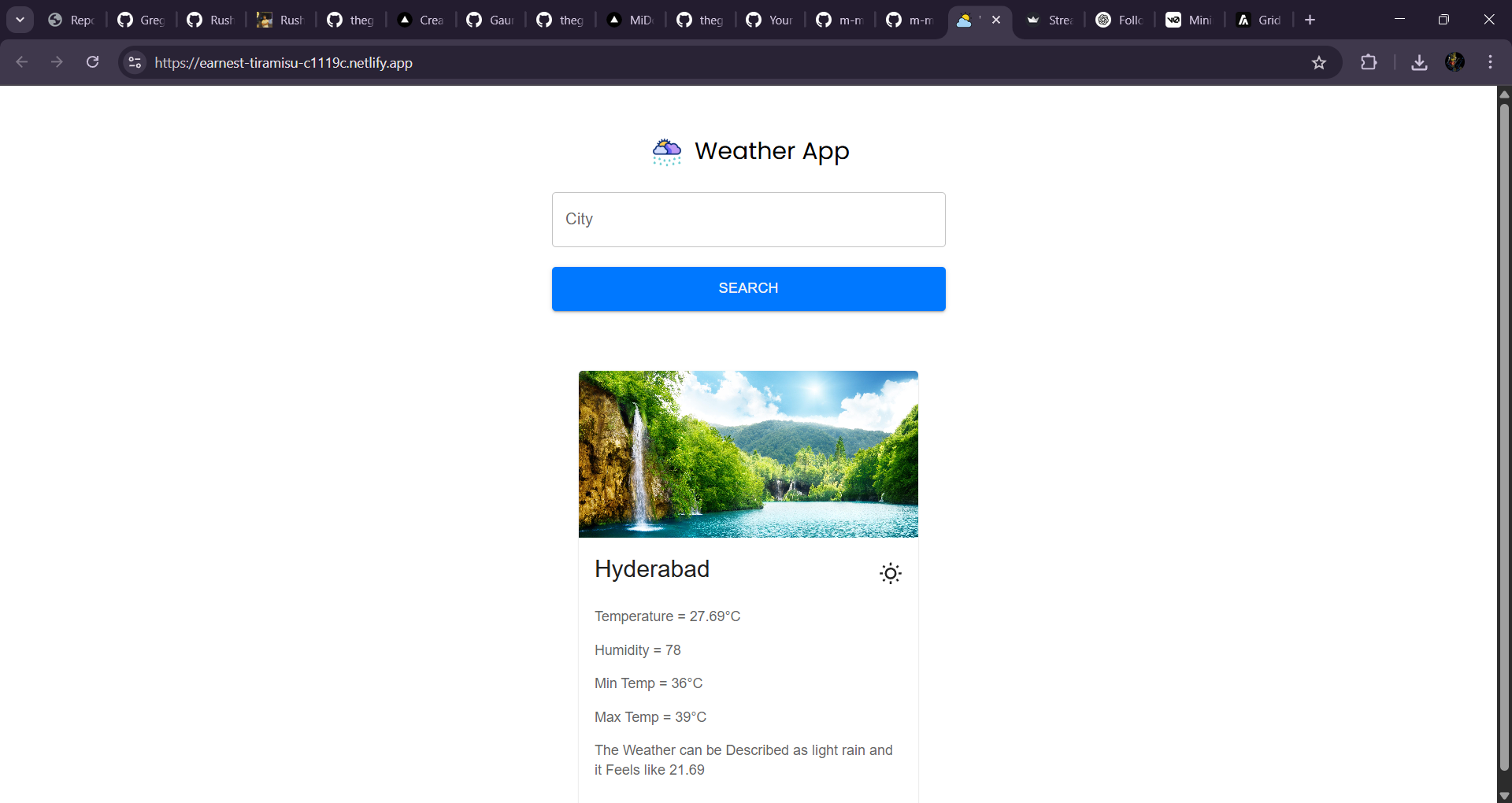 A sleek and responsive weather forecasting app showing real-time weather info for any location.